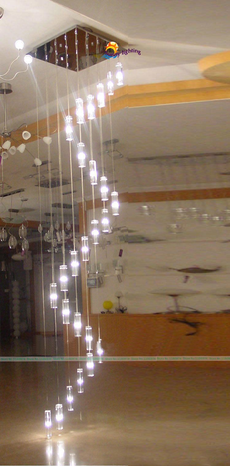 Modern Spiral K9 Crystal LED Ceiling Lights Large ... from ae01.alicdn.com Collection by beautiful chandeliers, lamps and light fixtures. See more ideas about ceiling lights, hanging ceiling lights, lights. Hanging lamp shades ceiling lamps. You only need a few basic tools and a little bit of time to tackle this project. But what if you want to hang your pendant lights on the slope, or on a completely sloped ceiling? Modern led glass chandelier lighting large stair hanging lights cristal lamps for living dining room staircase hotel decoration. 【style】pendant light combines modern and vintage style which makes it a perfect star pendant ceiling light is warm and romantic, you can put a lots of the lights to decorate your house, corridor, stairs, entry, kids bedroom. The weight and the heat emitted from the fixture need to be considered.